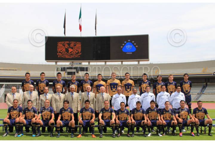 MÉXICO, D.F., 04AGOSTO2011.- El equipo de fútbol de los PUMAS, campeón de torneo de clausura 2011, se tomó la foto oficial en el estadio Olímpico Universitario. Los universitarios han ligado una racha de tres victorias al hilo en el inicio del actual campeonato de la liga de mexicana. FOTO: CUARTOSCURO.COM