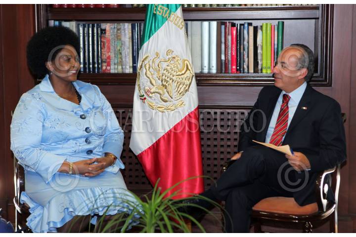 MÉXICO, D.F., 19ABRIL2010.- Felipe Calderón, Presidente de la República, se reunió con Maite Nkoanamashabane, ministra de relaciones internacionales y cooperación de Sudafrica en la Residencia Oficial de los Pinos. FOTO: ALFREDO GUERRERO/CUARTOSCURO.COM