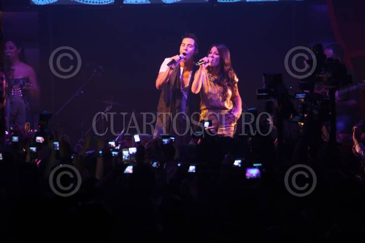 MÈXICO, D.F., 05JULIO2012.- Maité Perroni y Christian Chávez cantaron a dueto la canción de tatuajes durante la presentación del nuevo disco del ex integrante del grupo RBD. FOTO: IVÁN STEPHENS /CUARTOSCURO.COM