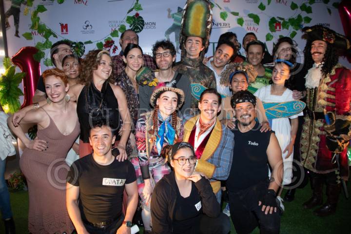 CIUDAD DE MÉXICO, 01MARZO2024. Parte del elenco acompañado de padrinos e invitados especiales a su paso por la alfombra verde de la la obar "Peter Pan que sale mal", que celebbra sus 100 representaciones, en el Centro Cultural Chapultepec. FOTO: EDGAR NEGRETE LIRA/CUARTOSCURO.COM