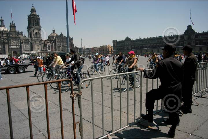 MÉXICO D.F. 19MARZO2007.- Martí Batres secretario de desarrollo social del gobierno capitalino acompañado de Dinora Pizano Coordinadora de Comunicación Social de la delegación Gustavo A. Madero y Javier Hidalgo secretario del Intituto de la Juventud, realizaron un recorrido por la plancha del Zócalo después de tomar el curso para andar en bicicleta. FOTO: GUILLERMO PEREA/CUARTOSCURO.COM