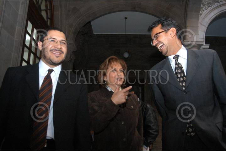 MEXICO; D.F., 07DICIEMBRE2005.- Malu Michel, diputada federal, Leonel Cota Montaño, presidente nacional del PRD y Gerardo Fernández Noroña, vocero del CEN del PRD, durante el 5 Pleno Ordinario del VI Consejo Nacional del PRD. FOTO: Moisés Pablo/CUARTOSCURO.COM