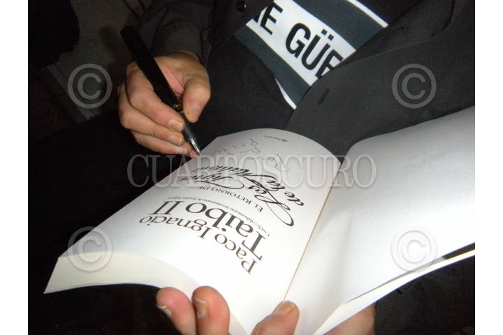 MÉXICO, D.F., 30JULIO2010.- Paco Ignacio Taibo II, presento su mas reciente libro titulado "El retorno de los Tigres de la Malasia", en el Tianguis de Libros que se instalo sobre la avenida Paseo de la Reforma. FOTO: DIEGO SIMÓN SÁNCHEZ/CUARTOSCURO.COM