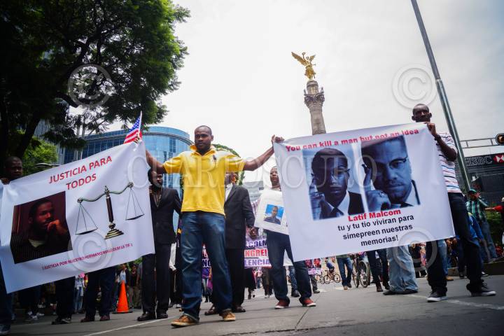 MÉXICO, D.F., 09JUNIO2013.- A un mes la muerte de Malcolm Latif Shabazz, nieto de Malcolm X, el Comité Ciudadano de Defensa de los Naturalizados y Afromexicanos exigió justicia por su muerte y ofreció una ofrenda floral al difunto. FOTO: PEDRO ANZA /CUARTOSCURO.COM