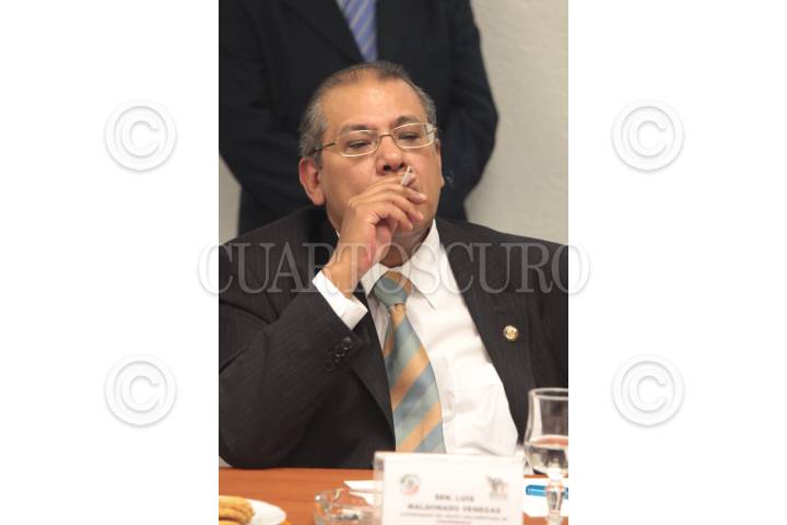 MÉXICO, D.F., 09SEPTIEMBRE2010.- Luis Maldonado, senador de Convergencia, fumado en una reunión en el Senado de la República, violando la disposición que prohíbe fumar en lugares cerrados y recintos declarados como libres del humo de cigarrillo como lo son las instalaciones senatoriales de Xicotencatl. FOTO: ESPECIAL/CUARTOSCURO.COM