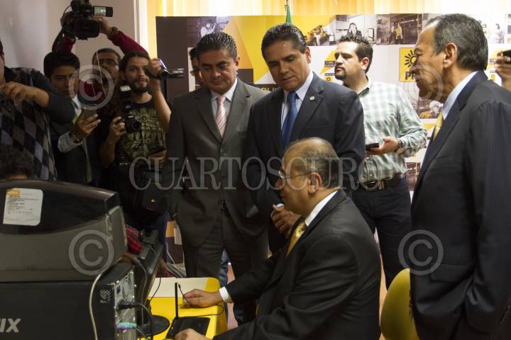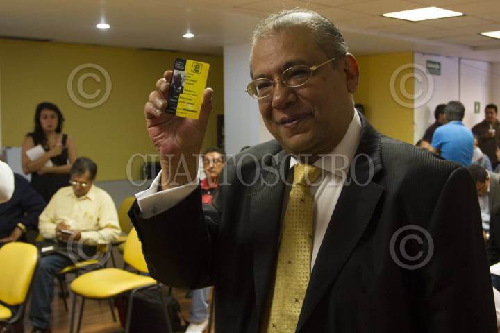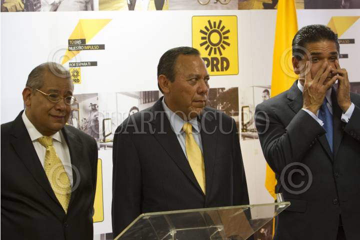 MÉXICO, D.F., 13MAYO2014.- Jesús Zambrano, presidente nacional del PRD, acompañado de Luis Espinoza Chazaro, diputado federal, Silvano Aurioles Conejo, coordinador de la bancada del PRD en la Cámara de Diputados, Luis Maldonado, secretario de gobierno de Puebla, quien se afilio al PRD esta mañana. FOTO: GUILLERMO PEREA /CUARTOSCURO.COM