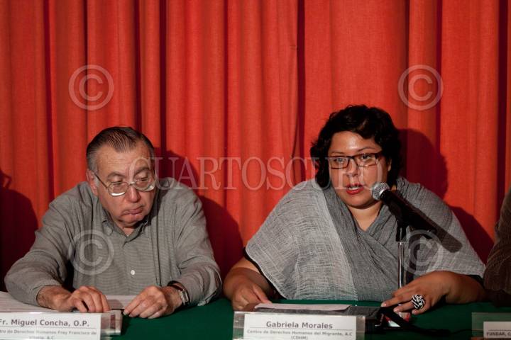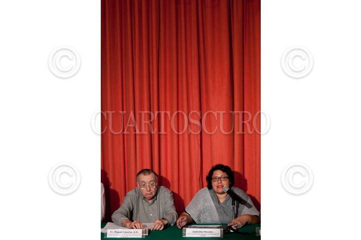 MÉXICO, D.F., 28JUNIO2011.- Miguel Concha Malo, director del Centro de Derechos Humanos Fray Francisco de Vitoria, A.C., y Gabriela Morales, integrante del Centro de Derechos Humanos del Migrante, A.C., denunciaron hostigamiento por parte de las autoridades en el ejercicio de su labor al norte del país. FOTO: MOISÉS PABLO/CUARTOSCURO.COM