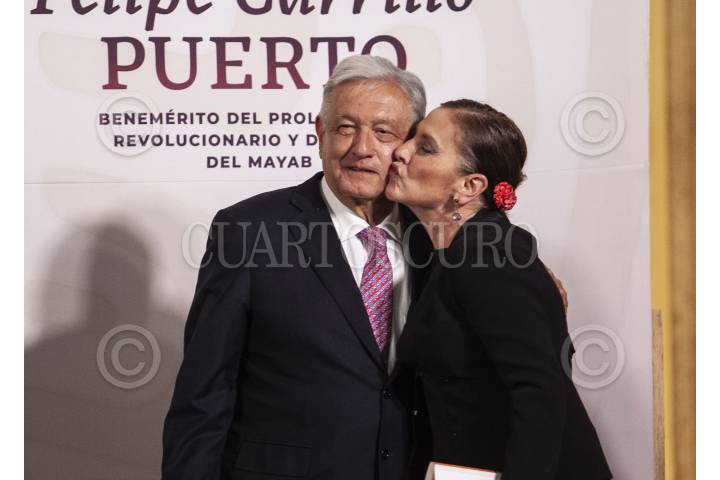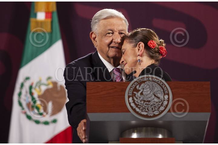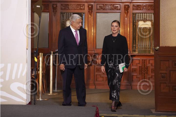 CIUDAD DE MÉXICO, 11SEPTIEMBRE2024.- Andrés Manuel López Obrador, presidente de México acompañado de Beatriz Gutiérrez Müller, académica y esposa del mandatario durante conferencia de prensa en Palacio Nacional. FOTO: ANDREA MURCIA /CUARTOSCURO.COM