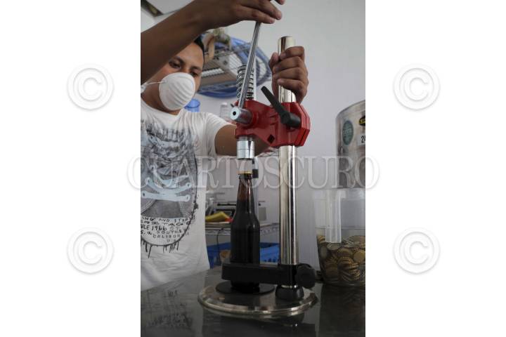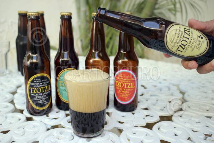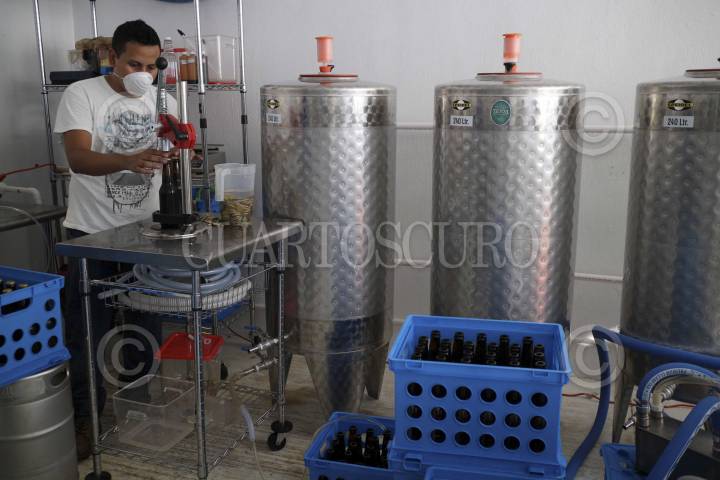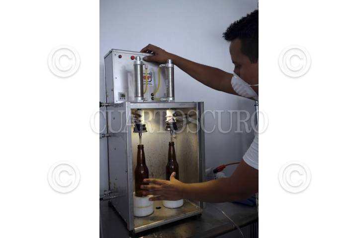 TUXTLA GUTIERREZ, CHIAPAS, 29ABRIL2014.- A la cebada -tostada intensamente y puesta ebullir con el lúpulo que da sabor floral-, se le agrega la cantidad exacta de granos de café, dorados y molidos. La mezcla, llevada a la temperatura exacta, permite realzar el dejo amargo característico de la cerveza, y le otorga un especial gusto y aroma a la cereza del café; además de un tono obscuro vivo. Esta es la fórmula de el nuevo sabor de Tzotzil Cerveza Artesanal, un producto chiapaneco que lucha por abrirse espacio en el mercado, hasta ahora monopolizado por el producto de las grandes cerveceras. Sin embargo, la alta calidad de los productos y el laborioso cuidado con el que trabajan, deja atrás a las mejores marcas; y le permite al producto mantener y conservar los nutrientes propios de la cebada - vitamina B, Calcio, Hierro, y minerales, además de un gusto y cuerpo propios, únicos. FOTO: ELIZABETH RUIZ /CUARTOSCURO.COM