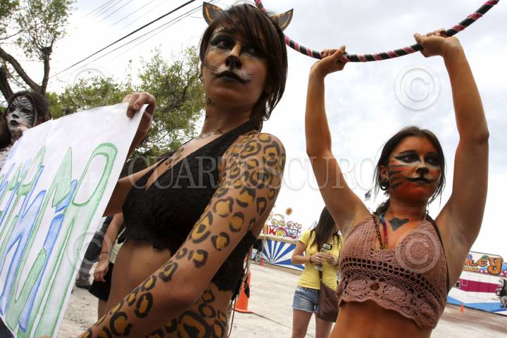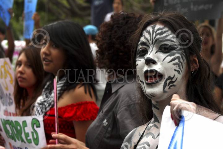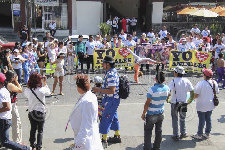 CUERNAVACA, MORELOS, 05JUNIO2012.- Aproximadamente 60 jóvenes se manifestaron a la afueras de un circo recién instalado en la Av. Vista hermosa, esto para promover los espectáculos circenses sin animales y protestar contra la crueldad animal. FOTOS: ALMA LAFAYET /CUARTOSCURO.COM