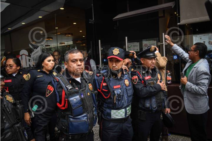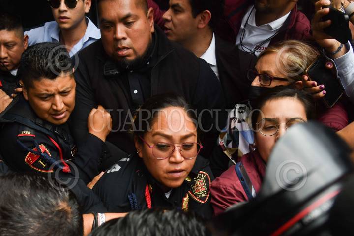 CIUDAD DE MÉXICO, 06SEPTIEMBRE2023.- A Martha Lucía Mícher, senadora y representante de Marcelo Ebrard, aspirante coordinador de los Trabajos de Defensa de la Transformación, le fue negado el acceso al inmueble del World Trade Center en unas horas se darán los resultados de la encuesta que definirá al próximo candidato presidencial para el proceso electoral de 2024. Personal de la policía bancaria de la capital intervino en el acceso para controlar el conato de bronca. FOTO: MARIO JASSO/CUARTOSCURO.COM