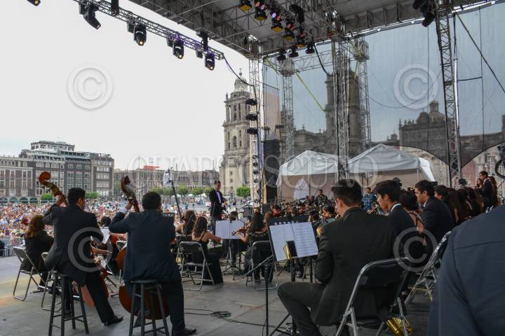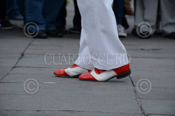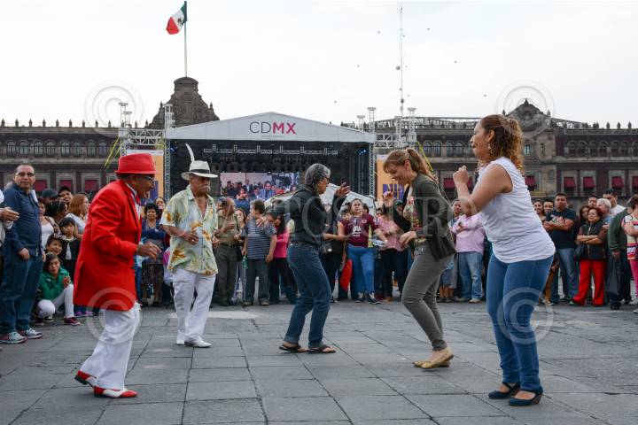 CIUDAD, MÉXICO, 16ABRIL2017.- El cierre del 33 Festival Ciudad de México estuvo marcado con la participación de diversas presentaciones de orquesta en homenaje al músico y "rey del mambo" Dámaso Pérez Prado. Personas se reunieron en la plaza del Zócalo, para escuchar y bailar mambo. FOTO: MARIO JASSO /CUARTOSCURO.COM