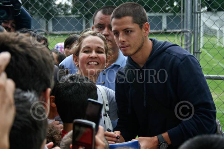 GUADALAJARA, JALISCO, 12JULIO2011.- Javier "Chicharito" Hernández, jugador de fútbol que milita actualmente en el Manchester United de la Liga Premier de Inglaterra, realizo una visita al Club Chivas Verde Valle, mismo que lo vio crecer y formarse como jugador profesional. FOTO: FERNANDO CARRANZA/CUARTOSCURO.COM