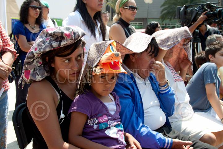 MÉXICO, D.F., 18JUNIO2011.- Intenso calor se dejó sentir en la capital, por lo que las personas que asistieron la inauguración del “Mandala Quinto Sol”, en la explanada del Monumento a la Revolución, tuvieron que cubrirse de los intensos rayos del sol. FOTO: MOISÉS PABLO/CUARTOSCURO.COM
