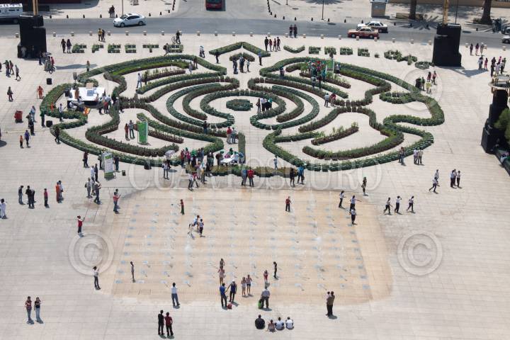 MÉXICO, D.F., 18JUNIO2011.- En la explanada del Monumento a la Revolución se inauguró el “Mandala Quinto Sol”, elaborado con 2,000 m2 de hidro-maceteros de material reciclado. FOTO: MOISÉS PABLO/CUARTOSCURO.COM