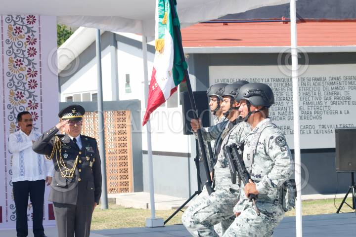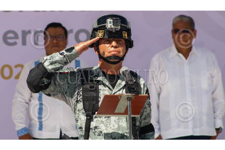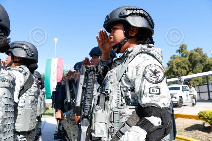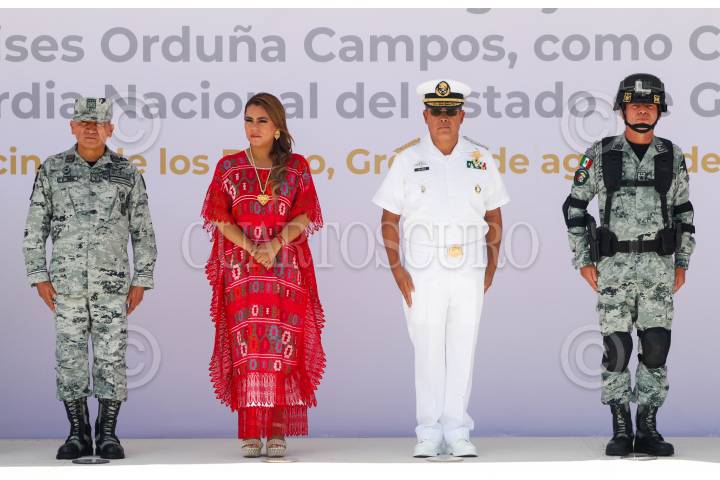 CHILPANCINGO, GUERRERO. 16AGOSTO2024.- En Chilpancingo, se realizó la Ceremonia de "Toma de Protesta, Posesión al Cargo y Protesta de Bandera" del Comisario Jefe Ulises Orduña Campos, como Coordinador Estatal de la Guardia Nacional en Guerrero, relevando del mando al comisario Víctor Fernández Mondragón. La gobernadora Evelyn Salgado Pineda, comentó que la Guardia Nacional se ha consolidado en Guerrero como la punta de lanza de la estrategia de construcción de paz. FOTO: DASSAEV TÉLLEZ/CUARTOSCURO.COM