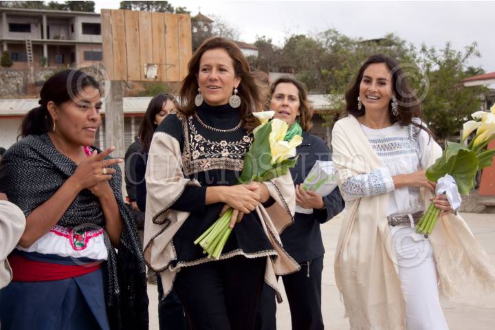QUIEGOLANI, OAXACA, 10MARZO2011.- Margarita Zavala, esposa del Presidente de los Estado Unidos Mexicanos y Mané Sánchez Cámara de Cué, presidenta del DIF estatal, convivió con mujeres indígenas de esta población en el marco de la conmemoración del Día Mundial de la Mujeres, en esta visita también visitó una escuela primaria. FOTO: ERIKA JEANET GARCÍA/CUARTOSCURO.COM