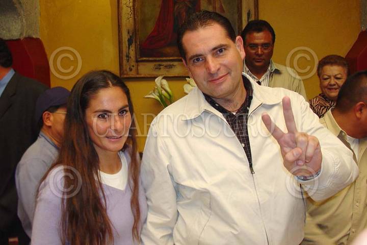 OAXACA, OAXACA, 28ENERO2005.- Mane Sánchez Camara de Cué y Gabino Cué Monteagudo,ex candidato de la coalición Todos Somos Oaxaca, momentos después de que el Juez Quinto de lo Penal dictara el auto de libertad al panista. FOTO: Blanca Esthela Hernández/CUARTOSCURO.COM