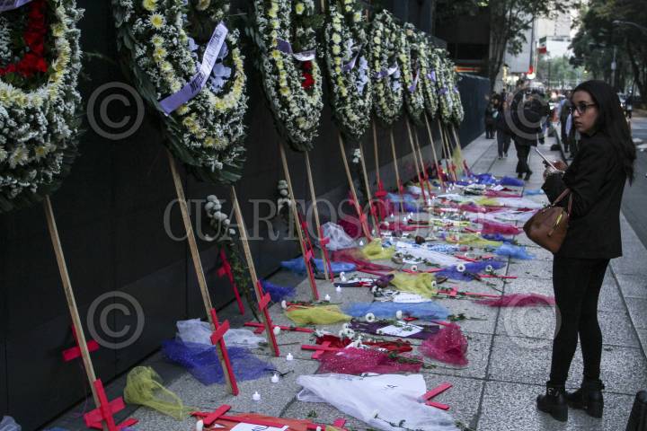 CIUDAD DE MÉXICO, 25NOVIEMBRE2016.- Organizaciones de mujeres colocaron cruces, coronas de flores, veladoras y articulos de desaparecidas y asesinadas en el edificio de la Procuraduria General de la República, como parte de las manifestaciones y exigencia de justicia durante el Día Internacional Día Internacional de la Eliminación de la Violencia contra la Mujer. FOTO: ADOLFO VLADIMIR /CUARTOSCURO.COM