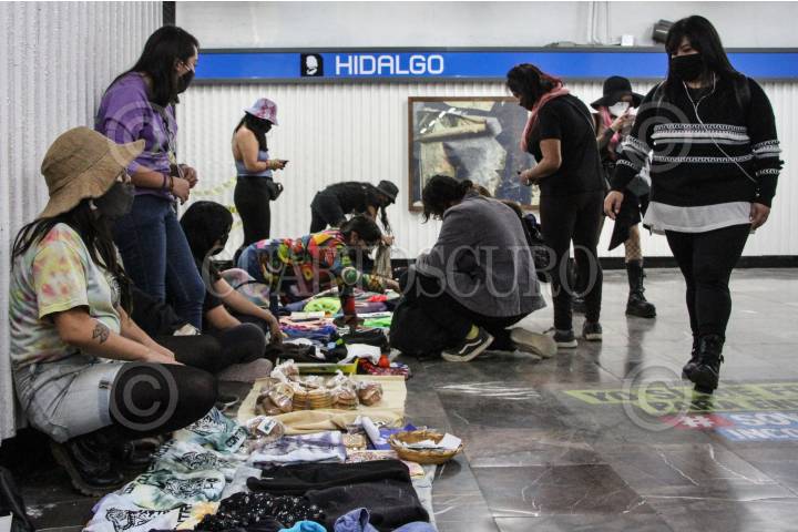 Bazar en el Metro de la ciudad, instalado por mujeres de distintos colectivos feministas. FOTO: ROGELIO MORALES /CUARTOSCURO.COM
