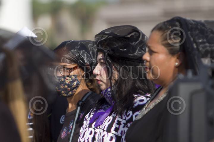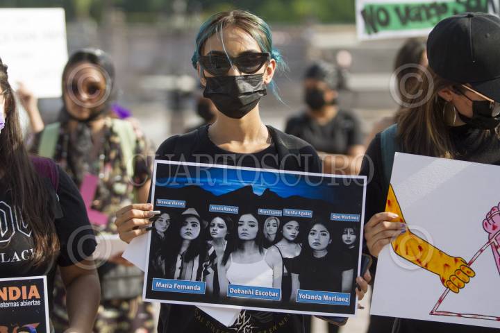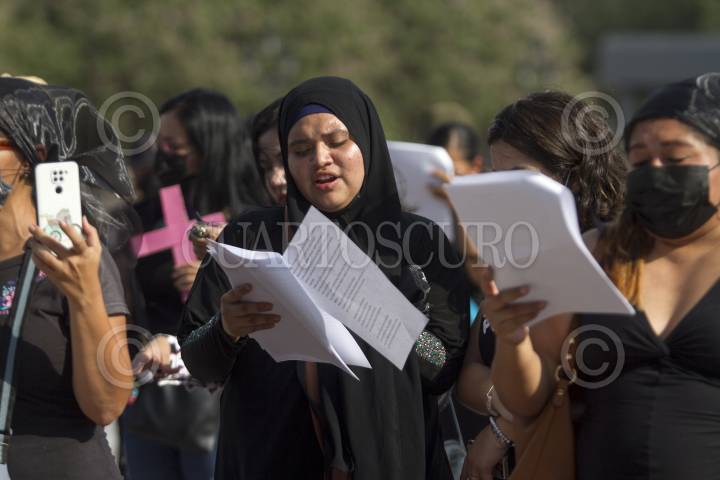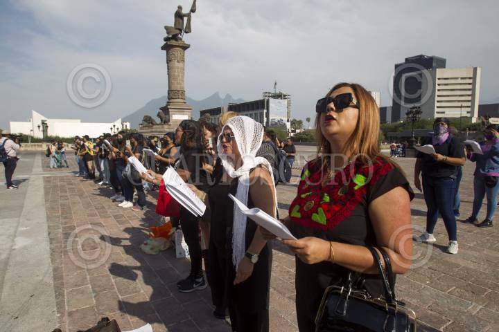 Decenas de mujeres acudieron a la Explanada de los Héroes en el centro de Monterrey a manifestarse en el día de Luto Nacional por la vida de las mujeres y las niñas.