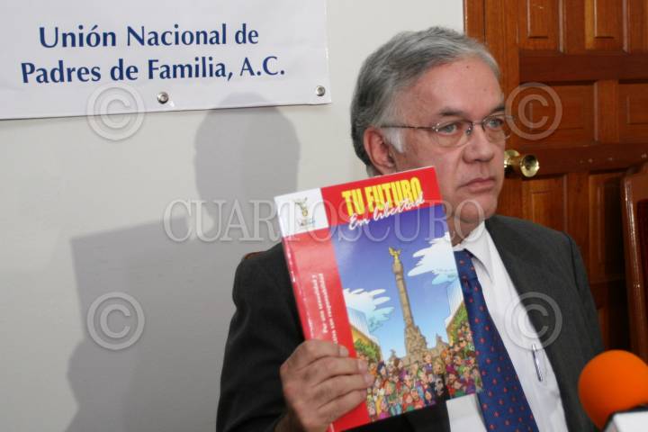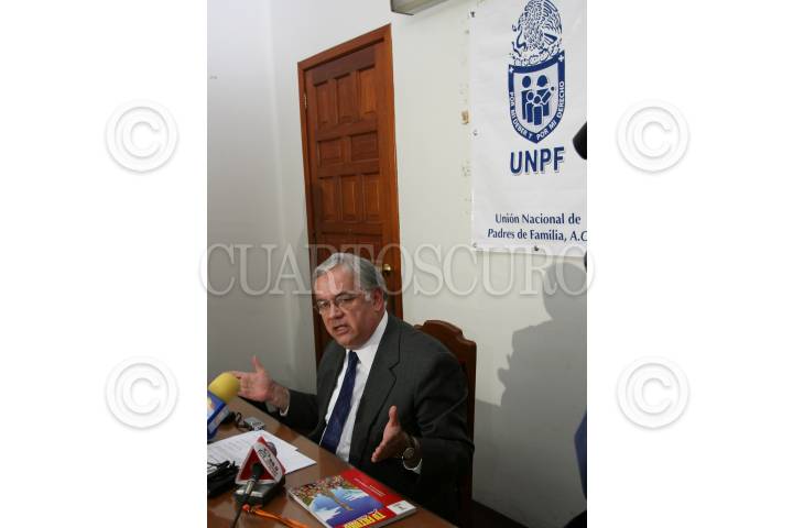 MÉXICO D.F., 07AGOSTO2008.-Guillermo Bustamante Manilla, presidente Nacional de la Unión de Padres de Familia, manifesto el desacuerdo de la organización que representa del contenido del libro sobre educación sexual que entregara el gobierno capitalino. FOTO: GUILLERMO PEREA/CUARTOSCURO.COM