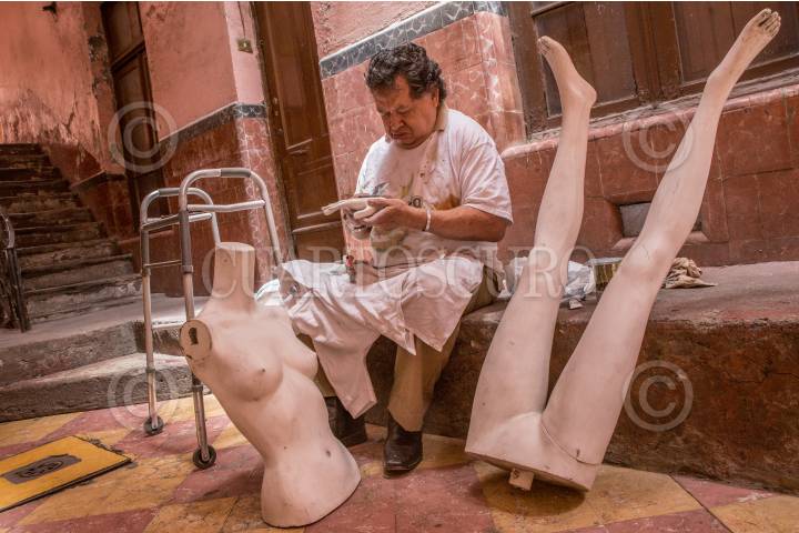 CIUDAD DE MÉXICO, 17AGOSTO2017.- Un señor repara maniquies en una vecindad del centro histórico. FOTO: TERCERO DÍAZ /CUARTOSCURO.COM