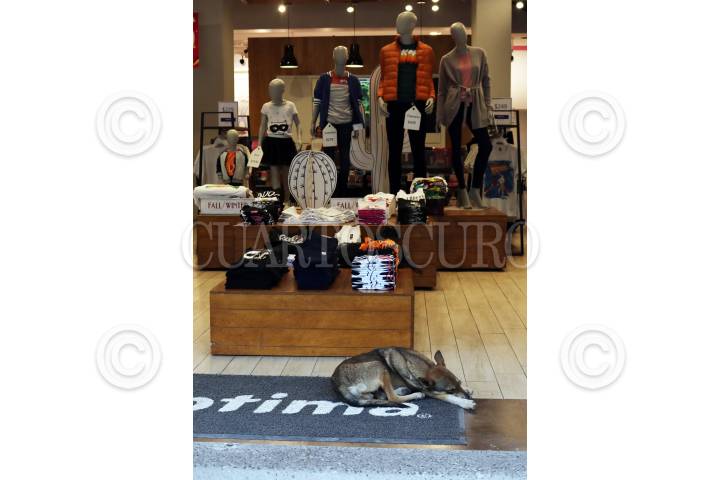 IGUALA DE LA INDEPENDENCIA, GUERRERO, 16OCTUBRE2019.- Un perro descansa sobra el tapete de entrada de una tienda de ropa en el zócalo de la calurosa Cuna de la Bandera. FOTO: MARGARITO PÉREZ RETANA /CUARTOSCURO.COM