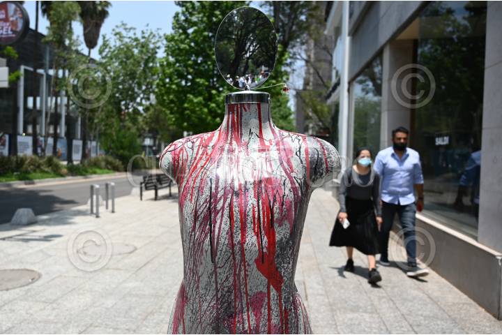 La exposición consta de una serie de maniquíes intervenidos que cuentan las historias de mujeres que sufrieron violencia de género.