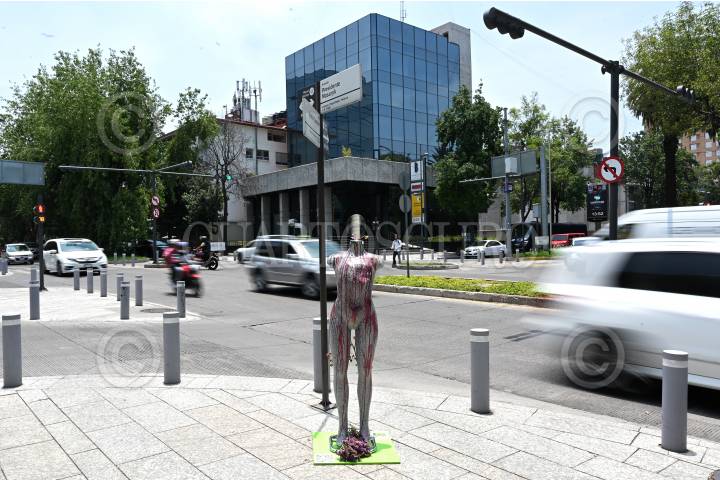 La exposición consta de una serie de maniquíes que contienen historias de distintas mujeres violentadas.