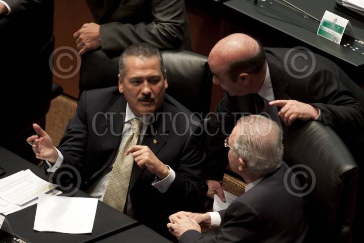 MÉXICO, D.F., 20MARZO2012.- Los senadores del PRI, Manlio Fabio Beltrones Rivera, Jesús Murillo Karam y Francisco Labastida Ochoa, durante la sesión ordinaria en el Senado de la República. FOTO: RODOLFO ANGULO /CUARTOSCURO.COM