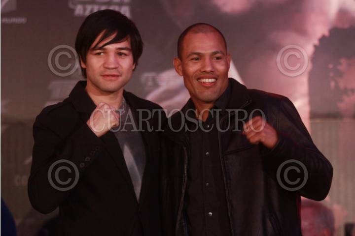 MÉXICO, D.F., 02FEBRERO2010.- Los boxeadores Alfonso Gomez y Jose Luis Castillo posan para los fotógrafos durante la conferencia de prensa donde se dieron a conocer los detalles sobre la Pelea de Box entre Manny Pacquiao y Joshua Clottey FOTO: SÁSHENKA GUTIÉRREZ/CUARTOSCURO.COM