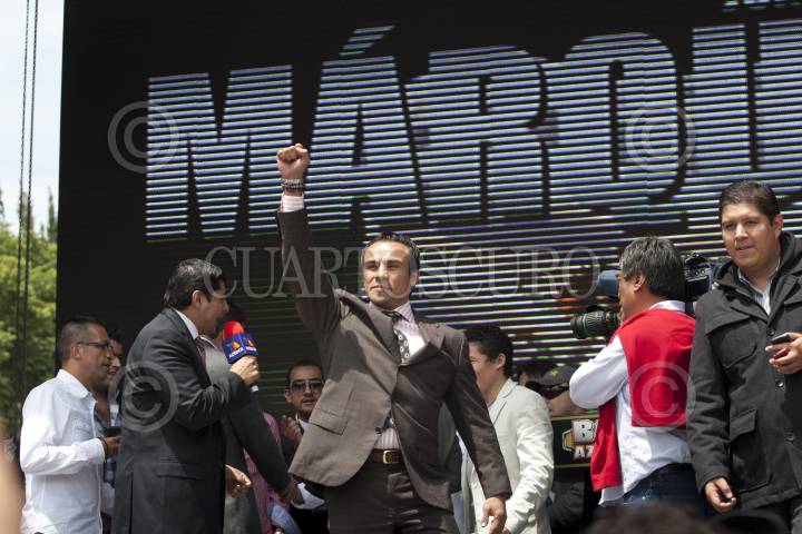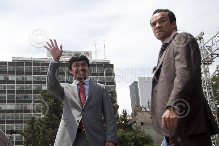 MÉXICO D.F. 08SEPTIEMBRE2011.- Manny Pacquiao de origen filipino y Juan Manuel Márquez boxeador mexicano, realizaron su presentación en el Monumento a la Revolución, donde dieron a conocer detalles de su tercera contienda para el 12 de Noviembre en las Vegas, Nevada. FOTO: GUILLEMRO PEREA/CUARTOSCURO.COM