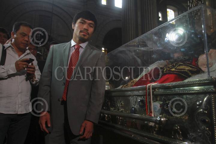 MÉXICO, D.F., 08SEPTIEMBRE2011.- Manny Pacquiao, multicampeón de box de origen filipino, visitó las reliquias del beato Juan Pablo II en la Catedral Metropolitana. El pugilista esta de visita en el país para promocionar su pelea con Juan Manuel Márquez a realizarse en las Vegas, Nevada. FOTO: GABINO ACEVEDO/CUARTOSCURO.COM