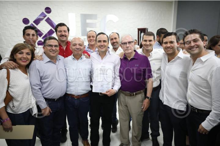 Manolo Jiménez, candidato la gubernatura de Coahuila por el PRI y PAN, recibió su constancia de mayoría en el Instituto Electoral de Coahuila, fue acompañado por su esposa e hijos.