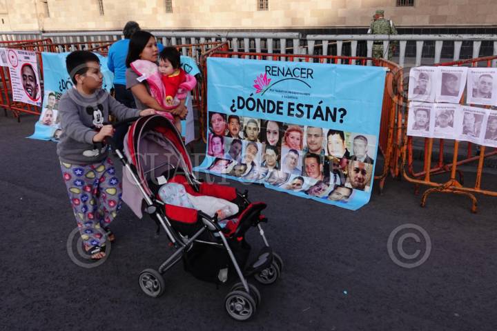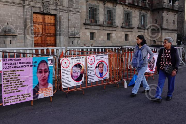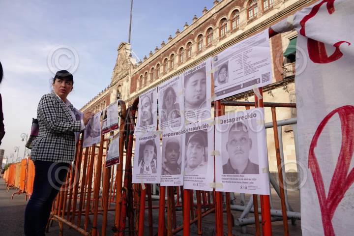 CIUDAD DE MÉXICO, 11ENERO2024.- Diversos colectivos de búsqueda de personas desaparecidas se manifestaron y colocaron mantas frente a Palacio Nacional, para exigir a las autoridades que se siga con el trabajo de búsqueda de sus familiares. FOTOS: ROGELIO MORALES /CUARTOSCURO.COM