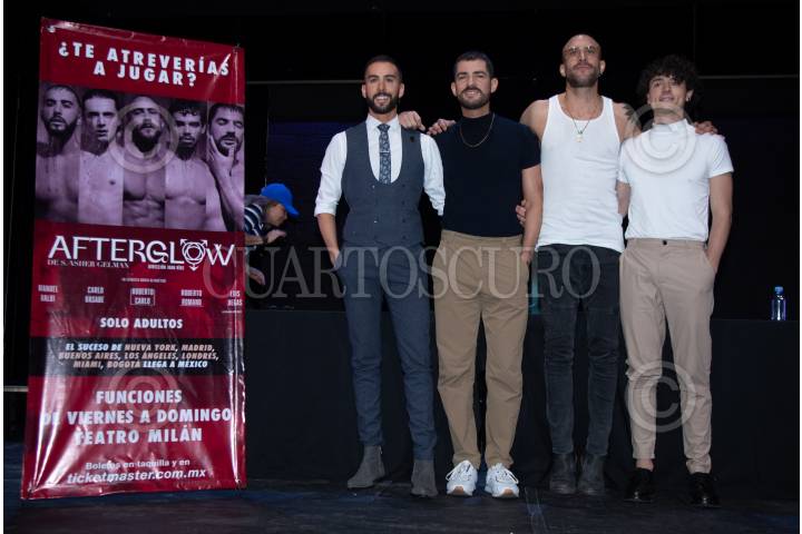 Roberto Carlo Alaís,Manuel Balbi, Carlo Basabe y Roberto Romano durante la conferencia de prensa de la obra de treatro titulada "Afterglow" a presentarse en el Teatro Milán.