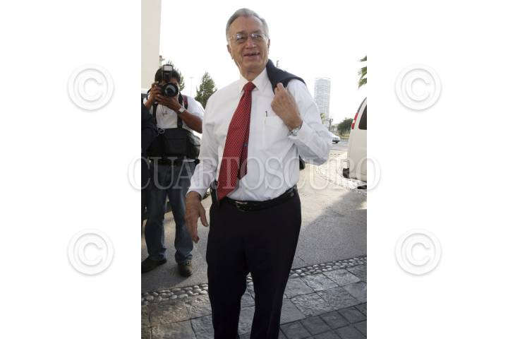 PUEBLA, PUEBLA., 31MAYO2012.- Manuel Barttlet, candidato al senado de la república por movimiento progresista, a su llegada al hotel en donde se realizó el debate entre candidatos al senado. FOTO: HILDA RIOS /CUARTOSCURO.COM