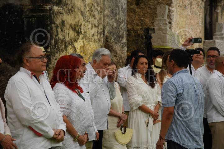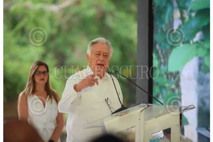 CAMPECHE, CAMPECHE 12 DE JUNIO 2024.- La Gobernadora de Campeche, Layda Sansores San Román, acompañada por el director general de la Comisión Federal de Electricidad Manuel Bartlett Díaz y la embajadora de Francia en México, Delphine Borione dieron el banderazo de la construcción de la obra del proyecto “Ampliación Energía Mayakán”. Considerado el proyecto de gas natural más importante que se tiene a nivel global. FOTO: MICHAEL BALAM/CUARTOSCURO.COM