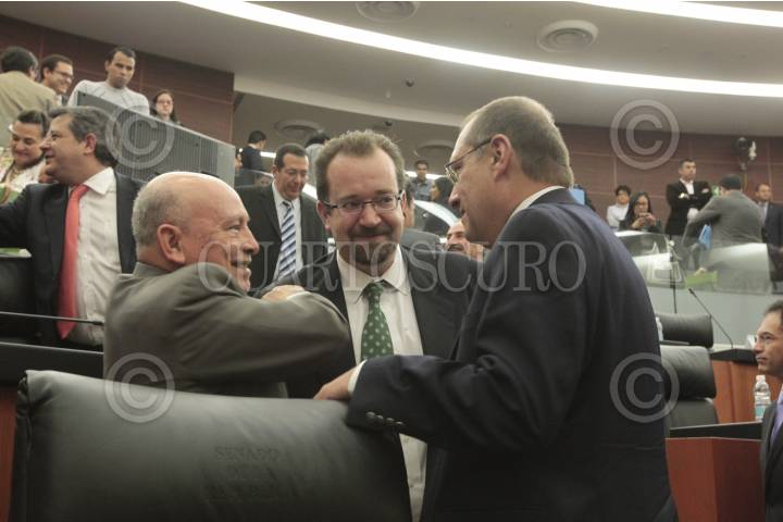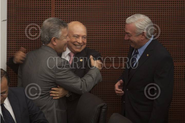 MÉXICO, D.F., 12DICIEMBRE2012.- Miguel Barbosa, coordinador de los senadores del PRD, Manuel Cavazos Lerma, senador del PRI, y Emilio Gamboa, coordinador de los senadores del PRI, se reunieron con integrantes de la Comisión de Asuntos Fronterizos en la Cámara Alta. . FOTO: MOISÉS PABLO /CUARTOSCURO.COM