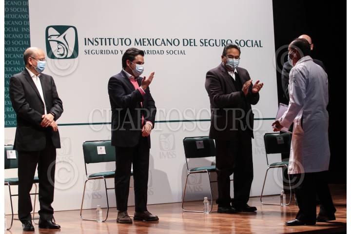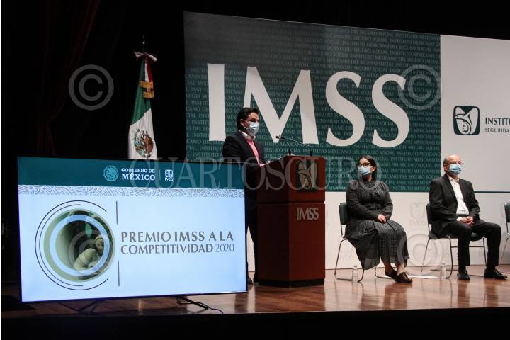 Zoé Robledo, encabezó la entrega de premios IMSS a la Competitividad en el Teatro Moisés Callejas.