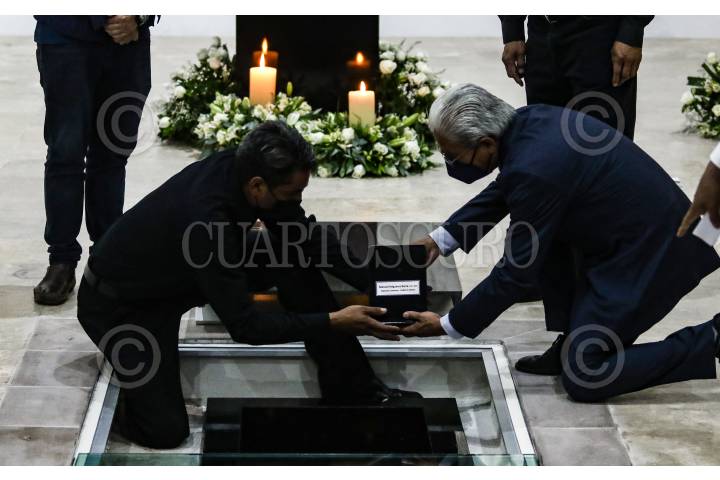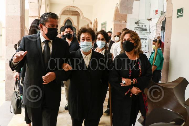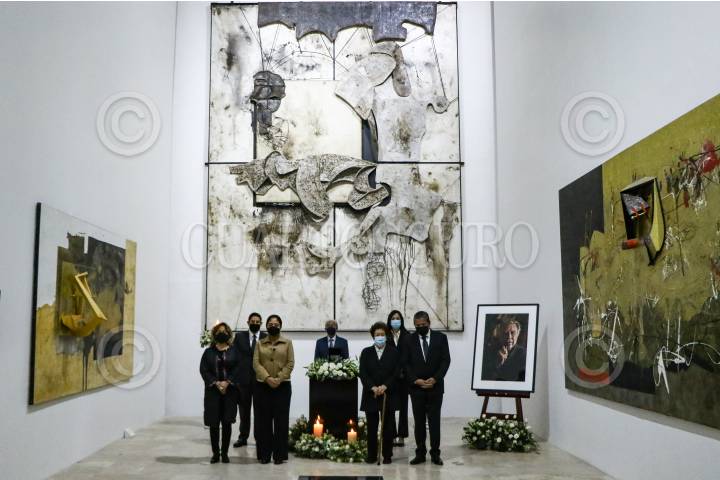 En una emotiva ceremonia, al pie del Retablo de los Mártires, de la capilla del Museo de Arte Abstracto de Zacatecas, fueron depositadas las cenizas del artista plástico nacido en Valparaíso, Zacatecas, Manuel Felguérez. David Monreal Ávila, gobernador del Estado, encabezó la ceremonia solemne acompañado de Mercedes Oteyza, esposa del pintor; Lucina Jiménez López directora general del Instituto Nacional de Bellas Artes y Literatura (INBAL); María de Jesús Muñoz Reyes, directora del Instituto Zacatecano de Cultura (IZC) “Ramón López Velarde” y el artista zacatecano Alfonso López Monreal.