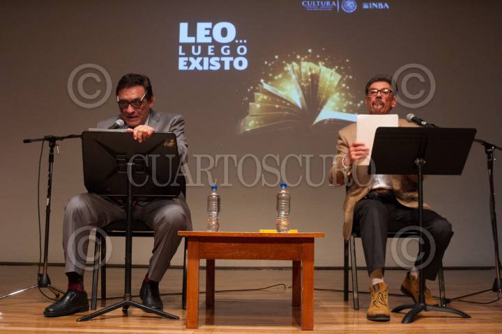 CIUDAD DE MÉXICO, 30JULIO2017.- Los actores Manuel Ojeda y Jorge Pondal leyeron un fragmento de la obra "Textos para pasar desapercibido" de Daniel Leyva, en el marco del programa Leo Luego Existo, en la sala Manuel M. Ponce del Palacio de Bellas Artes. FOTO: MOISÉS PABLO /CUARTOSCURO.COM