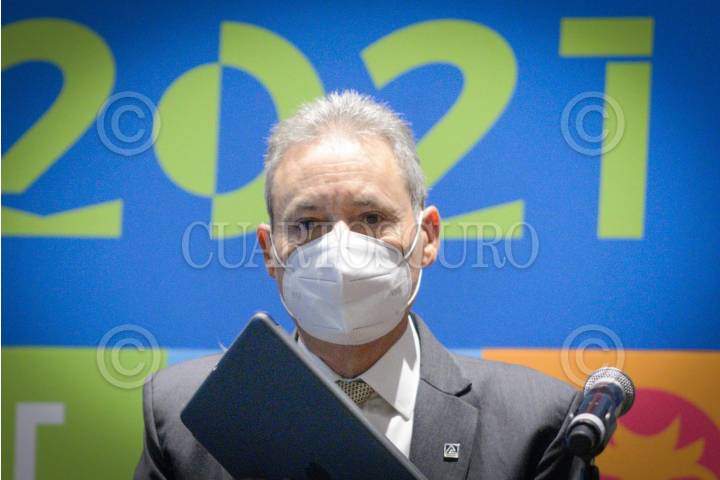 Manuel Rodríguez Villamil, secretario general CONCANACO SERVYTUR, durante conferencia de prensa presentaron la Feria de Verano León 2021 que se llevará a cabo del 2 al 25 de julio, contando con: actos circenses, venta de artesanías, conciertos y juegos mecánicos.