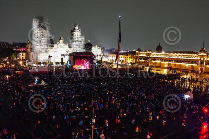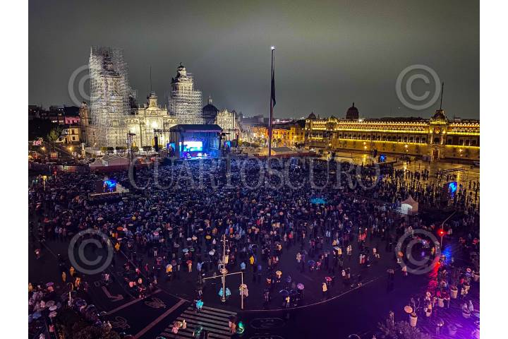 Aspectos de los trabajos y filas horas antes del concierto de Manuel Serrat en el Zócalo.
