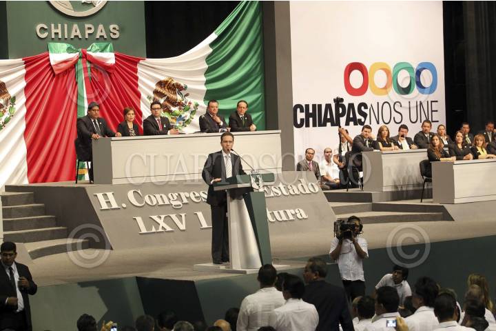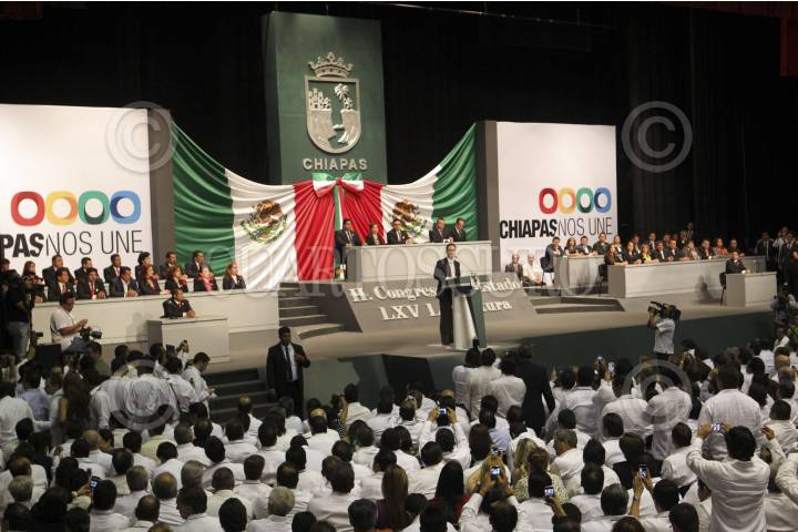 TUXTLA GUTIÉRREZ, CHIAPAS, 08DICIEMBRE2012.- Rindió protesta Manuel Velazco Coello, como gobernador Constitucional del estado de Chiapas para el periodo, 2012-2018. En representación del presidente de la república Enrique Peña Nieto, asistió al acto la secretaria de Desarrollo Social, Rosario Robles. Vázque Coello dijo, "sabemos que en el presidente tenemos un amigo y un aliado para sacar adelante a Chiapas". En sus primeras palabras, se dijo listo para participar en la "Cruzada contra el Hambre", anunciada por el Presidente. FOTO: ROGER FRIAS /CUARTOSCURO.COM