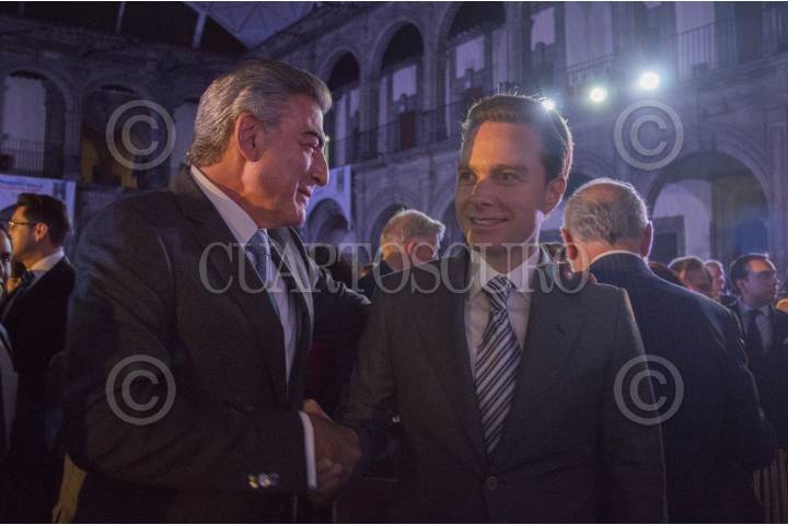 CIUDAD DE MÉXICO, 26ABRIL2017.- Antonio Gali, gobernador del estado de Puebla y Manuel Velazco, gobernador de Chiapas, durante la presentación del libro "La fuerza del cambio" de Rafael Moreno Valle, ex gobernador del estado de Puebla en el Colegio de San Ignacio de Loyola. FOTO: SELENE PACHECO /CUARTOSCURO.COM