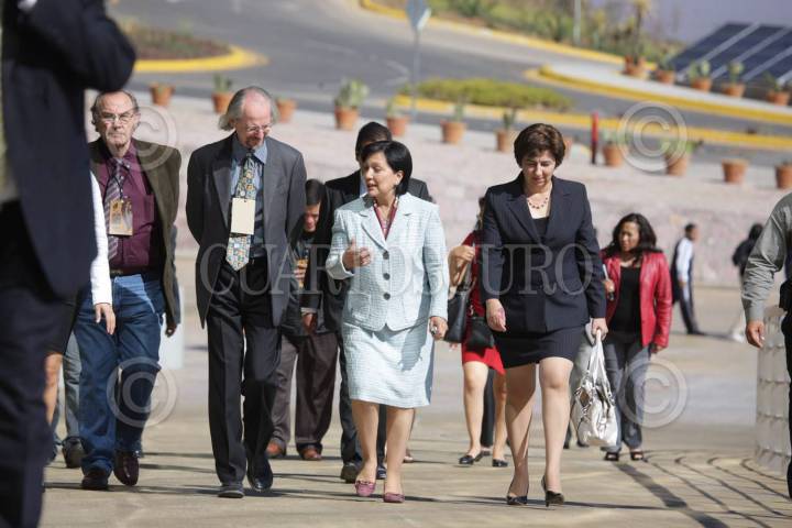 ZACATECAS, ZACATECAS, 19ABRIL2010.- Con el primer día de actividades, dio inicio el "2do Foro de Estrategias contra el cambio climático", para esto, dieron la bienvenida la gobernadora Amalia García y Thomas Manz, representante en México de la Fundación Friedrich Ebert, organización que ayuda en el fortalecimiento del contacto político internacional. FOTO: ADOLFO VALTIERRA/CUARTOSCURO.COM