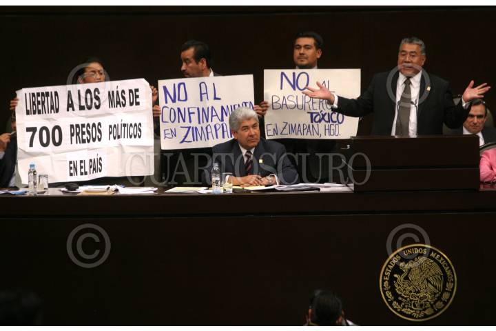 MÉXICO, D.F., 25SEPTIEMBRE2007.- Javier Hernández Manzanarez, diputado del PRD increpó a Francisco Ramírez Acuña, Secretario de Gobernación, por la construcción de un tiradero tóxico que se pretende construir en el estado de Hidalgo, durante la comparecencia del titular del encargado de la politica interna del país en la Cámara de Diputados. FOTO: MOISÉS PABLO/CUARTOSCURO.COM