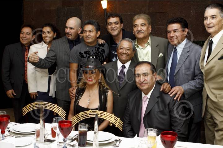 MÉXICO, D.F., 17AGOSTO2011.- Gustavo Alvite recibió de Armando Manzanero, presidente de la Sociedad de Autores y Compositores de México el reconocimiento y presea Gracias en la sede de la SACM. FOTO: RODOLFO ANGULO/CUARTOSCURO.COM